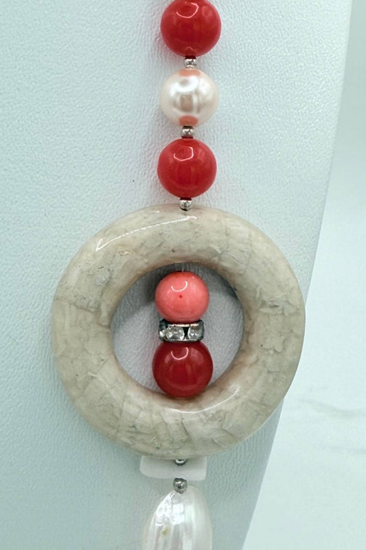 SAUTOIR PERLES CORAIL ET AGATES ORANGES