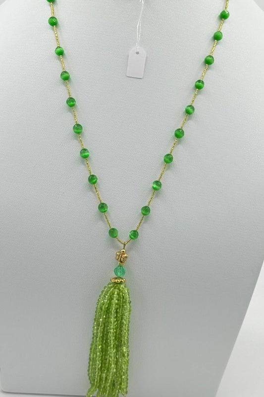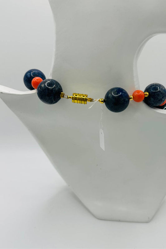 COLLIER TOUR DU COU AGATES VERTES ET RACINES DE CORAIL ORANGE