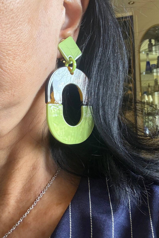 BOUCLES D'OREILLES CLIPS RESINE VERT ANIS