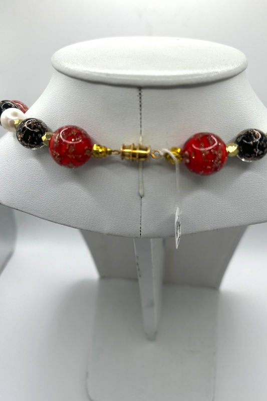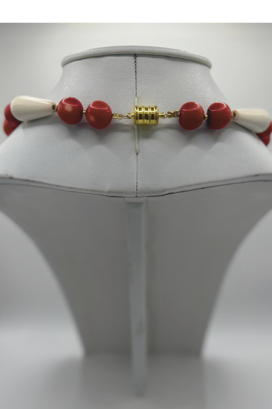 COLLIER RAS DU COU GROSSES PERLES ROUGES ET JAUNES
