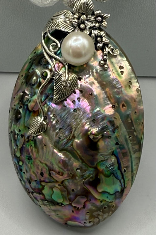 Collier en Cristal bleu Briolettes et nacre Aballone