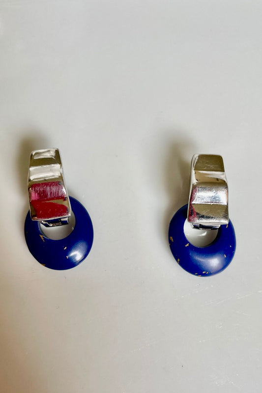 CLIPS LAPIS LAZULI ET DRAPE ARGENTE METAL