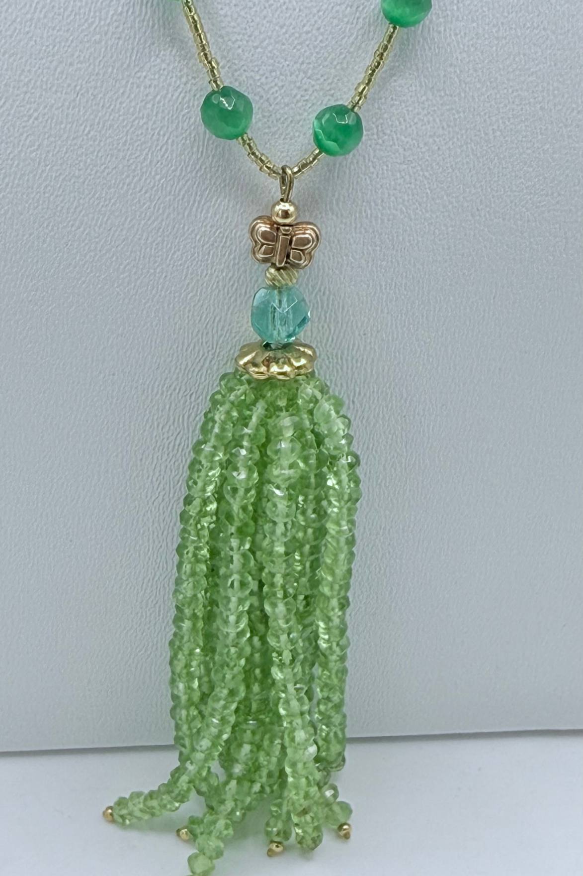 Sautoir long avec pompon en péridot